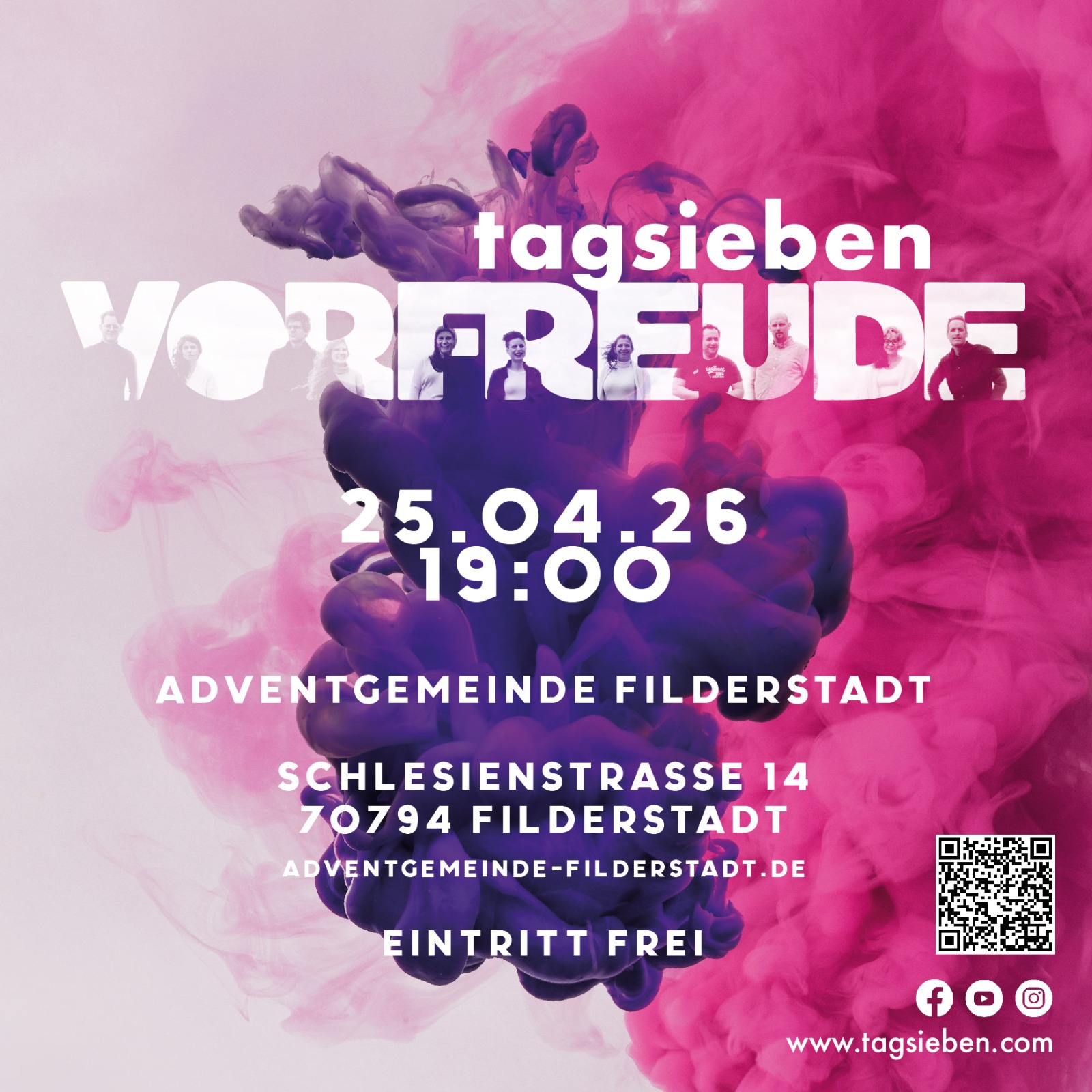 Am 25. April um 19 Uhr wird es ein Konzert der Band „tagsieben“ bei uns in der Adventgemeinde Filderstadt geben. Der Eintritt ist frei.